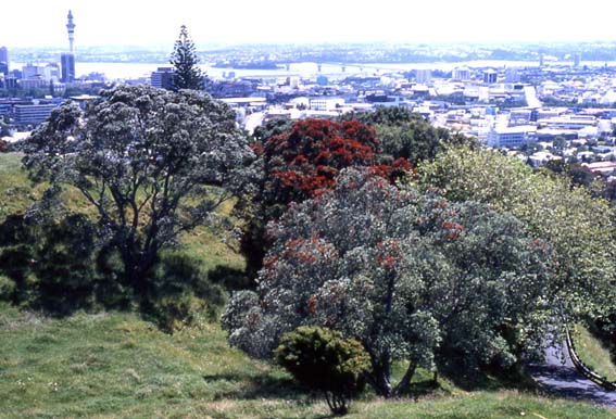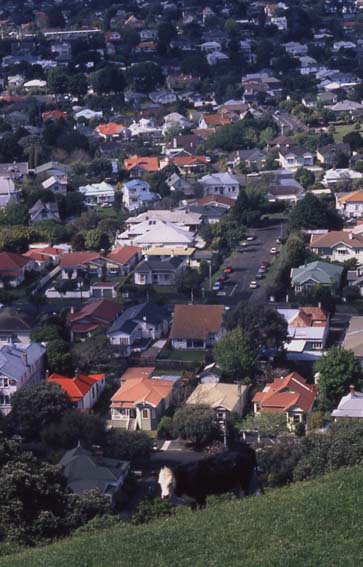 Cityから Mt.Eden までは Mt. Eden Rd. を通るバスに乗れば10〜15分、バス停から20分くらいで登れます。行きはタクシーが手軽です。「Mt. Eden summit, please」で。帰りは Mt. Eden Rd. を City と逆方向に10分程歩くと Mt. Eden Shops と呼ばれるお店が並ぶ一角へ出ます。一切観光客相手の店はありません。パン屋、八百屋、魚屋、肉屋、レストラン、喫茶店、ケーキ屋、電気屋、薬局、手芸屋、クリニック、銀行、郵便局などが立ち並び、なかなかおしゃれな店もあります。地元で評判のケーキ屋さんもあって、わざわざ買いに来る人も。庶民的なお店を見るには絶好の場所でもあります。