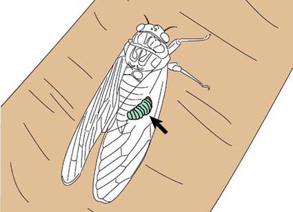 セミは昆虫の中では長寿で有名な虫です。その大半が幼虫時代ですが、アブラゼミでは七年も生きます。そして二週間ばかりの成虫時代を過ごすわけですが、セミヤドリガはその二週間に一生をかけるわけです。