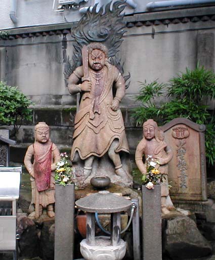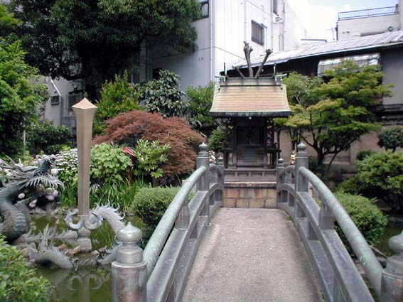 「福島聖天」「浦江聖天」と呼ばれるこのお寺は先にも書きましたとおり、如意山了徳院というのが正式な名称です。場所は大阪市福島区鷺洲2丁目にあり、福島駅からの聖天通商店街はかつての参道でした。寺院のしおりによりますと開山は不詳ですが江戸時代元文年代(1730年代)、高野山善寿院より来られた宥意上人を中興の祖と崇め、御本尊は聖天尊(十一面観音菩薩)で海岸地帯にあった浦江の海から漁師の網にかかって上がってこられたとされています。大阪府の文化財に指定されている山門、近年新しくなった本堂、鐘楼、水手向け不動明王、藤棚そして池が境内にあります。戦災で山門以外は殆どが焼失し、再建されたものだそうです。