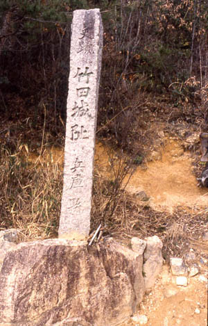 15世紀に土塁で築かれた山城で後に石垣による城郭に作り替えられました。竹田の町を南へ下り町並みがとぎれた辺りに「竹田城」の標識があり、ここを右折。途中山腹までは乗用車で登ることができ、そこに駐車場が設けられています。徒歩なら1時間、車なら15分くらいでしょうか。駐車場からは歩いて登ります。