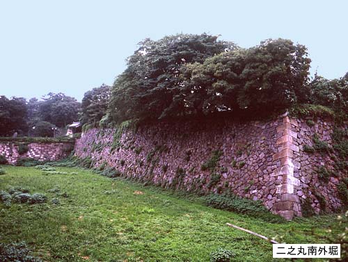 名古屋城観覧は有料になっており正門と東門の二カ所に入口があります。開園は午前9時から午後4時半まで、観覧料は大人500円、中学生以下は100円となっています。現在愛知万博の入場券をお持ちなら団体扱いで入ることができます。園内には庭園、梅林、ぼたん園、有名ななんじゃもんじゃの木などもあります。今回は余りの暑さに庭園部分は素通りしてきましたが。 さらに時間のある方は有料区域外にも外堀、石垣、門が残っており、今回私も見ることができませんでしたが、北外堀の北側からは西北隅櫓をみることができます。