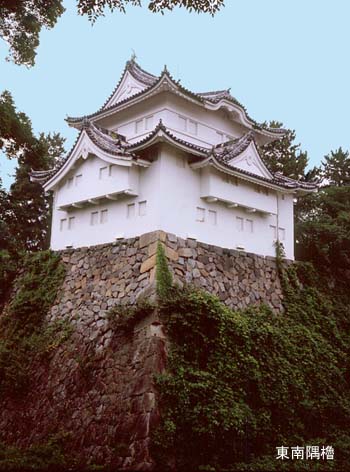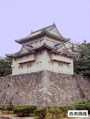 いわゆる坤櫓です。重要文化財。濃尾大地震で崩れたそうですが宮内省により修復されています。
